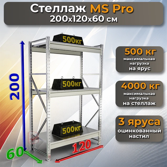 Ищете надежное и универсальное решение для хранения? Стеллаж металлический сборный MS Pro 200х120х60 с 3 ярусами хранения – это прочная и долговечная конструкция, которая подойдет как для складов и производственных помещений, так и для гаражей, кладовых и торговых точек.