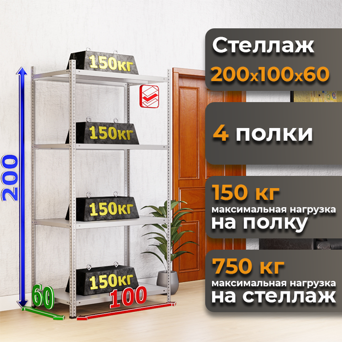 • Нагрузка на стеллаж: 750 кг