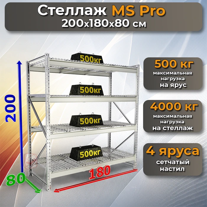 Складской стеллаж с сетчатым настилом MS Pro 200х180х80 – это мощная и надежная конструкция, предназначенная для эффективного хранения тяжелых и объемных предметов.